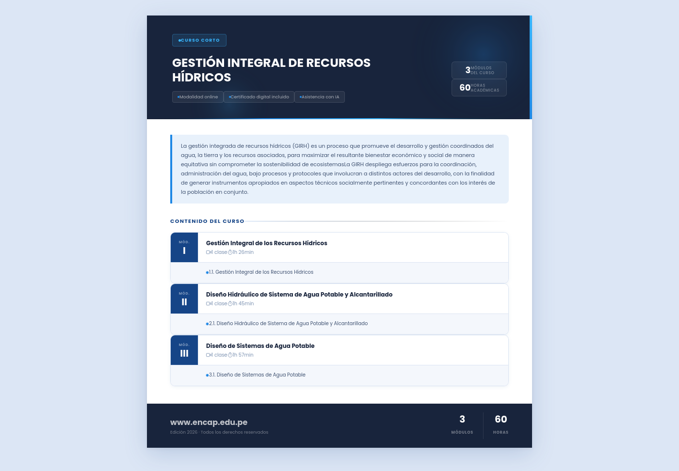 La gestión integrada de recursos hídricos (GIRH) es un proceso que promueve el desarrollo y gestión coordinados del agua, la tierra y los recursos asociados, para maximizar el resultante bienestar económico y social de manera equitativa sin comprometer la sostenibilidad de ecosistemasLa GIRH despliega esfuerzos para la coordinación, administración del agua, bajo procesos y protocoles que involucran a distintos actores del desarrollo, con la finalidad de generar instrumentos apropiados en aspectos técnicos socialmente pertinentes y concordantes con los interés de la población en conjunto.