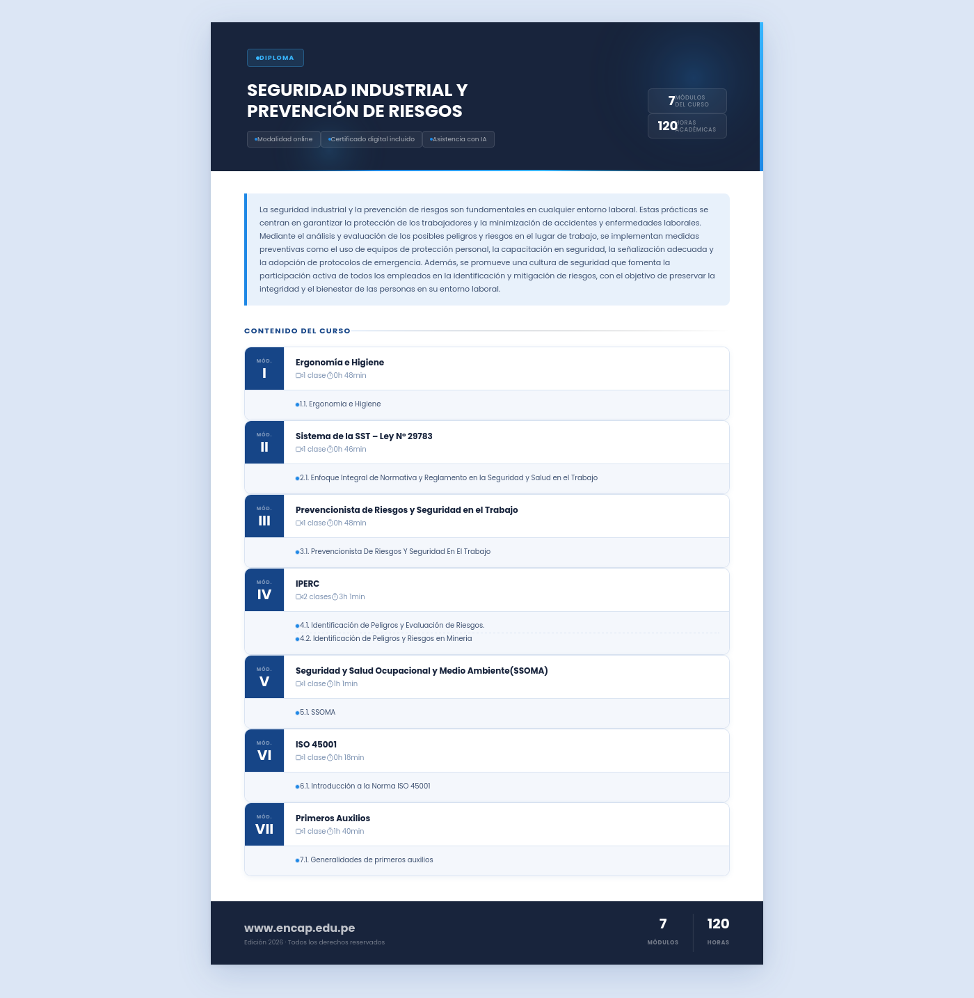 La seguridad industrial y la prevención de riesgos son fundamentales en cualquier entorno laboral. Estas prácticas se centran en garantizar la protección de los trabajadores y la minimización de accidentes y enfermedades laborales. Mediante el análisis y evaluación de los posibles peligros y riesgos en el lugar de trabajo, se implementan medidas preventivas como el uso de equipos de protección personal, la capacitación en seguridad, la señalización adecuada y la adopción de protocolos de emergencia. Además, se promueve una cultura de seguridad que fomenta la participación activa de todos los empleados en la identificación y mitigación de riesgos, con el objetivo de preservar la integridad y el bienestar de las personas en su entorno laboral.