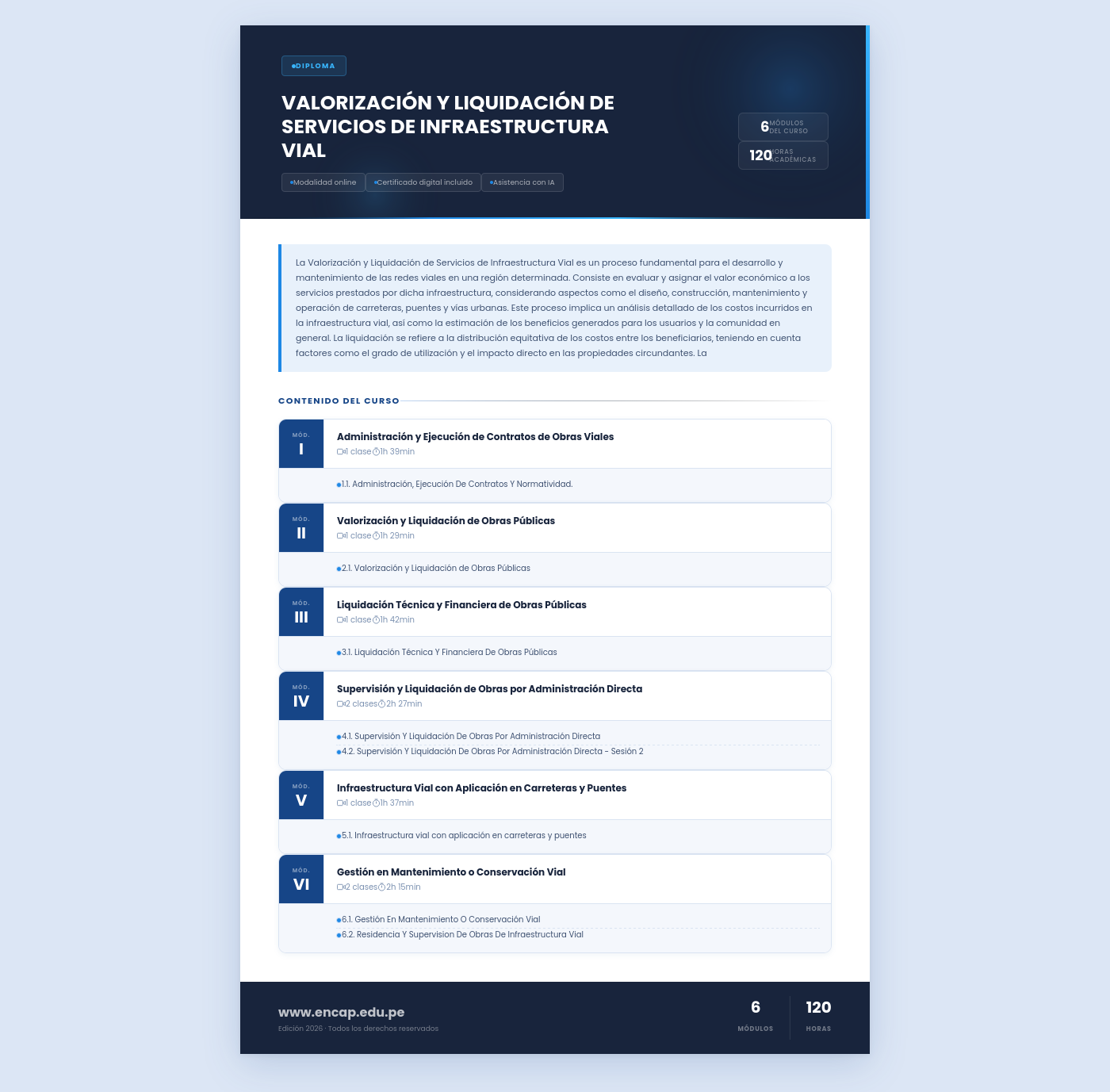 La Valorización y Liquidación de Servicios de Infraestructura Vial es un proceso fundamental para el desarrollo y mantenimiento de las redes viales en una región determinada. Consiste en evaluar y asignar el valor económico a los servicios prestados por dicha infraestructura, considerando aspectos como el diseño, construcción, mantenimiento y operación de carreteras, puentes y vías urbanas. Este proceso implica un análisis detallado de los costos incurridos en la infraestructura vial, así como la estimación de los beneficios generados para los usuarios y la comunidad en general. La liquidación se refiere a la distribución equitativa de los costos entre los beneficiarios, teniendo en cuenta factores como el grado de utilización y el impacto directo en las propiedades circundantes. La
