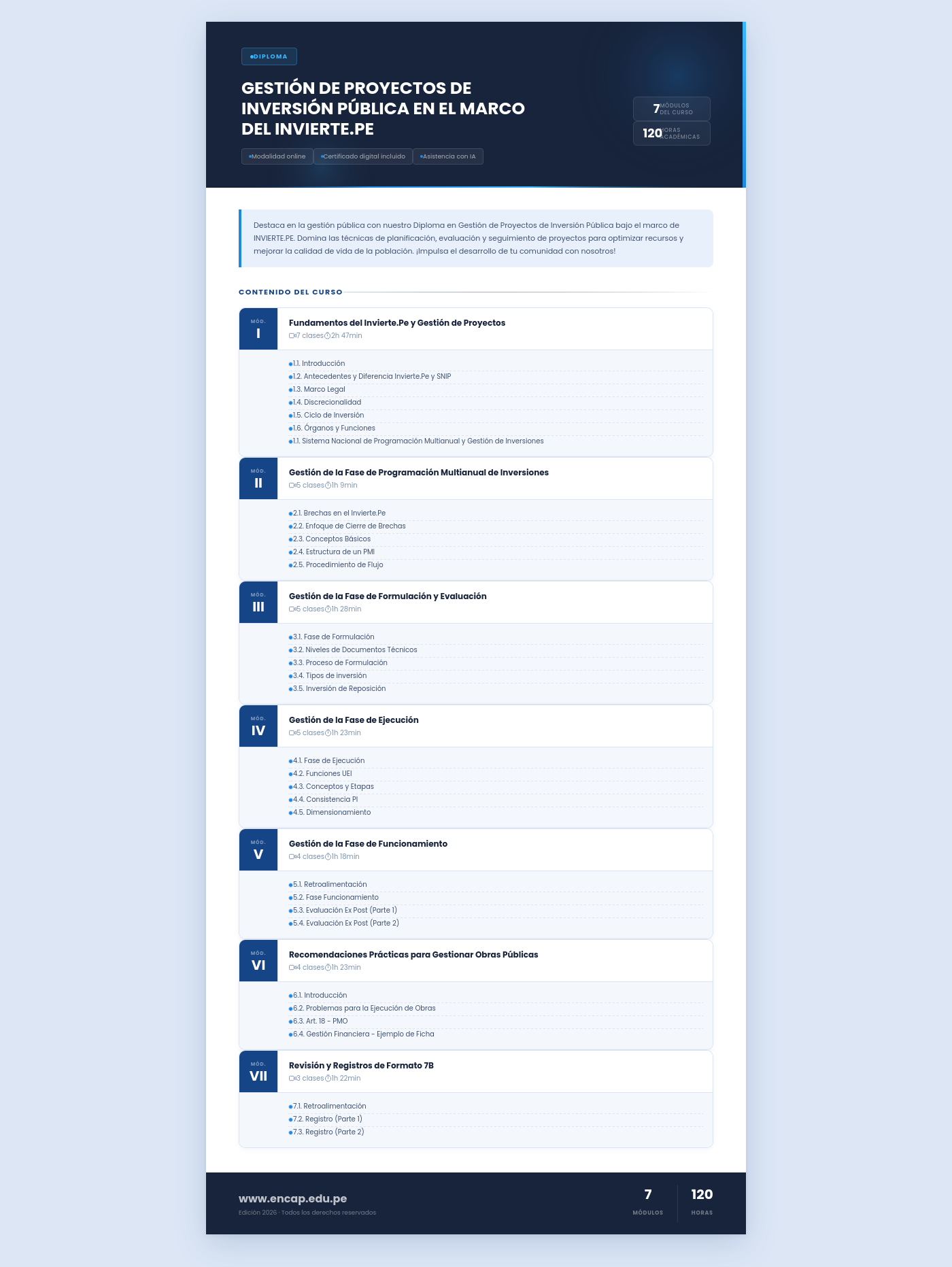 Destaca en la gestión pública con nuestro Diploma en Gestión de Proyectos de Inversión Pública bajo el marco de INVIERTE.PE. Domina las técnicas de planificación, evaluación y seguimiento de proyectos para optimizar recursos y mejorar la calidad de vida de la población. ¡Impulsa el desarrollo de tu comunidad con nosotros!