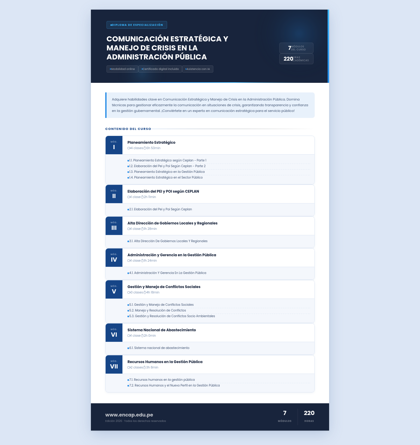 Adquiere habilidades clave en Comunicación Estratégica y Manejo de Crisis en la Administración Pública. Domina técnicas para gestionar eficazmente la comunicación en situaciones de crisis, garantizando transparencia y confianza en la gestión gubernamental. ¡Conviértete en un experto en comunicación estratégica para el servicio público!