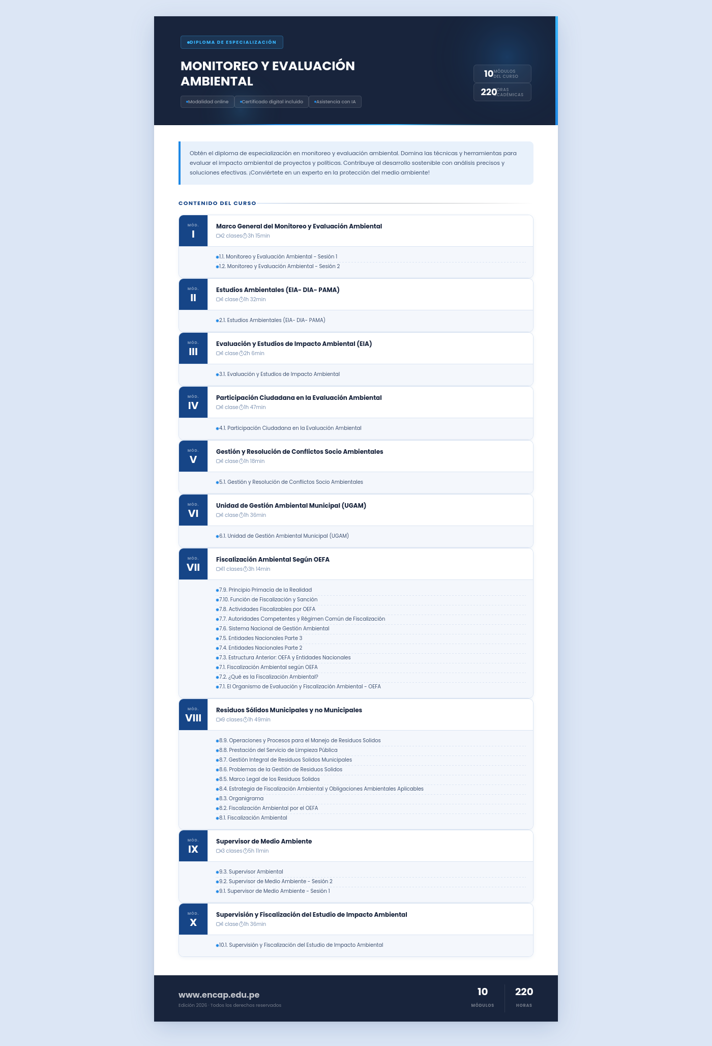 Obtén el diploma de especialización en monitoreo y evaluación ambiental. Domina las técnicas y herramientas para evaluar el impacto ambiental de proyectos y políticas. Contribuye al desarrollo sostenible con análisis precisos y soluciones efectivas. ¡Conviértete en un experto en la protección del medio ambiente!