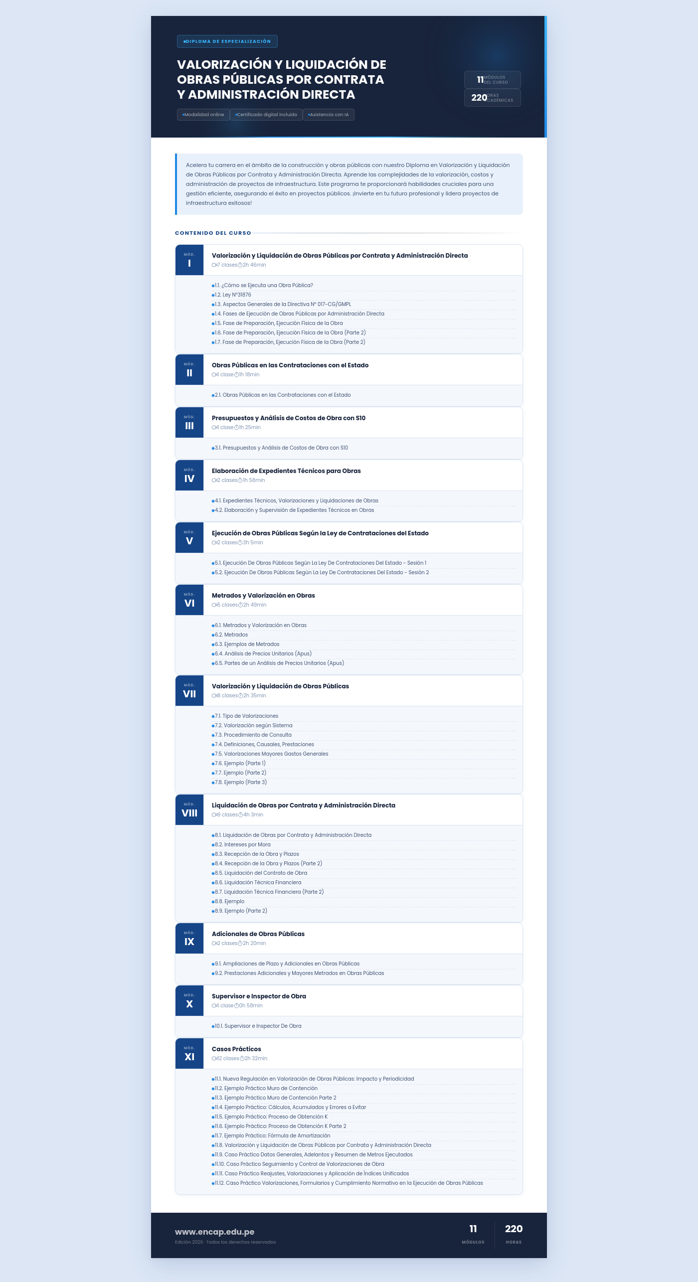 Acelera tu carrera en el ámbito de la construcción y obras públicas con nuestro Diploma en Valorización y Liquidación de Obras Públicas por Contrata y Administración Directa. Aprende las complejidades de la valorización, costos y administración de proyectos de infraestructura. Este programa te proporcionará habilidades cruciales para una gestión eficiente, asegurando el éxito en proyectos públicos. ¡Invierte en tu futuro profesional y lidera proyectos de infraestructura exitosos!