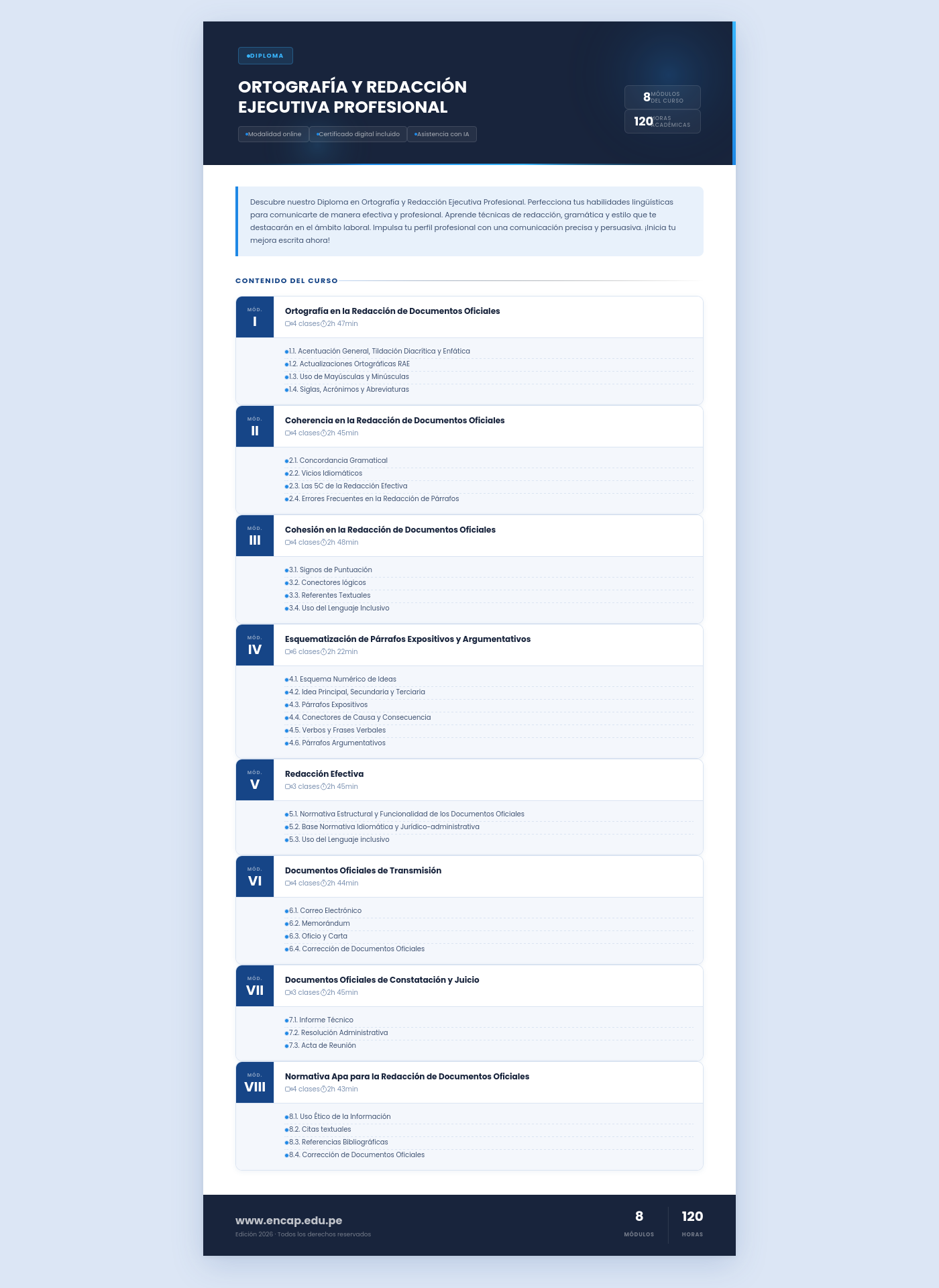 Descubre nuestro Diploma en Ortografía y Redacción Ejecutiva Profesional. Perfecciona tus habilidades lingüísticas para comunicarte de manera efectiva y profesional. Aprende técnicas de redacción, gramática y estilo que te destacarán en el ámbito laboral. Impulsa tu perfil profesional con una comunicación precisa y persuasiva. ¡Inicia tu mejora escrita ahora!