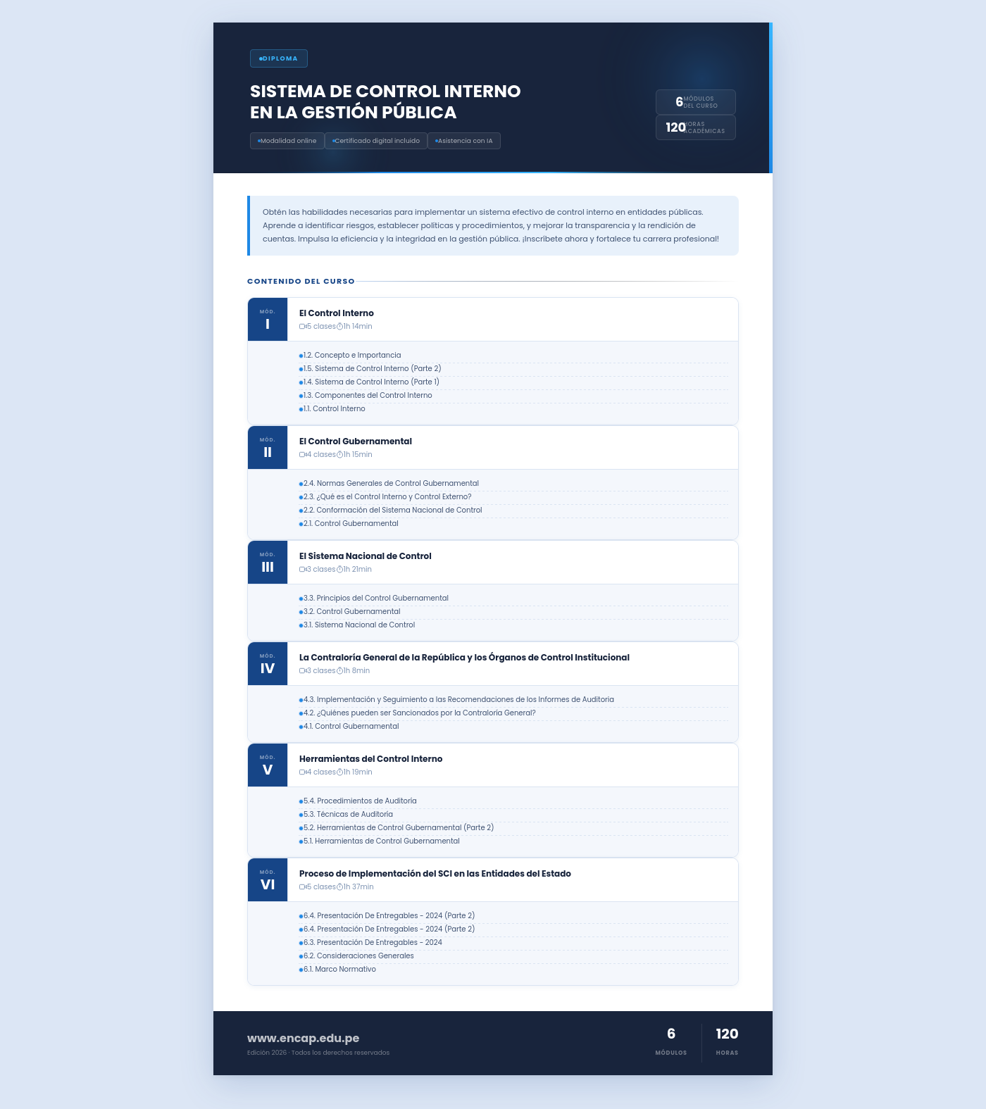 Obtén las habilidades necesarias para implementar un sistema efectivo de control interno en entidades públicas. Aprende a identificar riesgos, establecer políticas y procedimientos, y mejorar la transparencia y la rendición de cuentas. Impulsa la eficiencia y la integridad en la gestión pública. ¡Inscríbete ahora y fortalece tu carrera profesional!