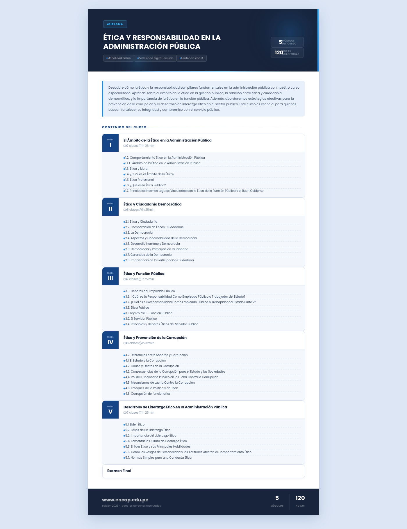 Descubre cómo la ética y la responsabilidad son pilares fundamentales en la administración pública con nuestro curso especializado. Aprende sobre el ámbito de la ética en la gestión pública, la relación entre ética y ciudadanía democrática, y la importancia de la ética en la función pública. Además, abordaremos estrategias efectivas para la prevención de la corrupción y el desarrollo de liderazgo ético en el sector público. Este curso es esencial para quienes buscan fortalecer su integridad y compromiso con el servicio público.
