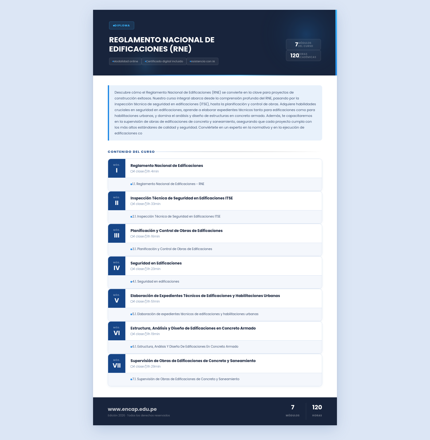 Descubre cómo el Reglamento Nacional de Edificaciones (RNE) se convierte en la clave para proyectos de construcción exitosos. Nuestro curso integral abarca desde la comprensión profunda del RNE, pasando por la inspección técnica de seguridad en edificaciones (ITSE), hasta la planificación y control de obras. Adquiere habilidades cruciales en seguridad en edificaciones, aprende a elaborar expedientes técnicos tanto para edificaciones como para habilitaciones urbanas, y domina el análisis y diseño de estructuras en concreto armado. Además, te capacitaremos en la supervisión de obras de edificaciones de concreto y saneamiento, asegurando que cada proyecto cumpla con los más altos estándares de calidad y seguridad. Conviértete en un experto en la normativa y en la ejecución de edificaciones co