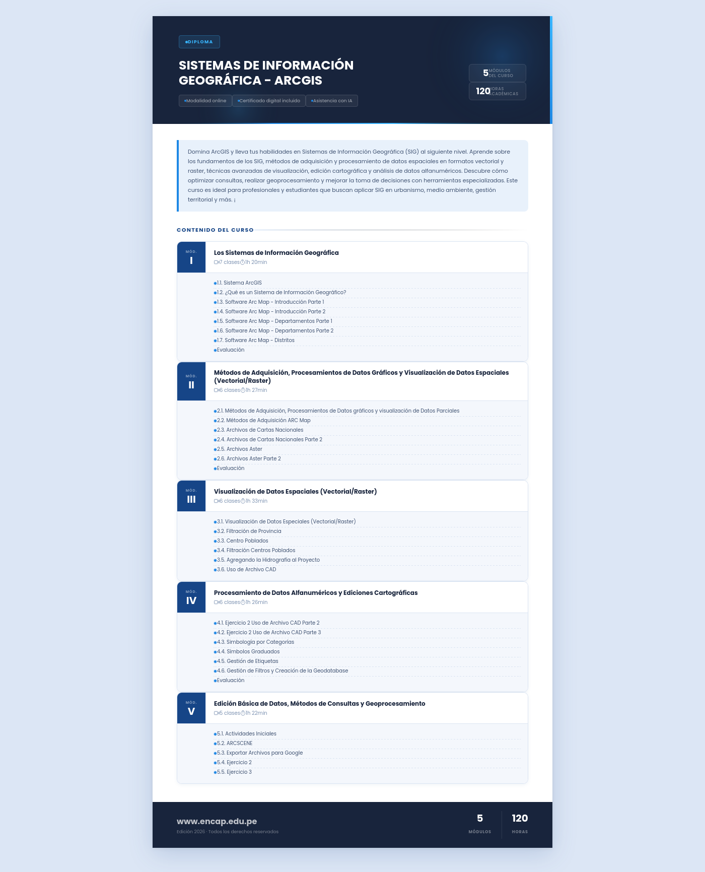 Domina ArcGIS y lleva tus habilidades en Sistemas de Información Geográfica (SIG) al siguiente nivel. Aprende sobre los fundamentos de los SIG, métodos de adquisición y procesamiento de datos espaciales en formatos vectorial y raster, técnicas avanzadas de visualización, edición cartográfica y análisis de datos alfanuméricos. Descubre cómo optimizar consultas, realizar geoprocesamiento y mejorar la toma de decisiones con herramientas especializadas. Este curso es ideal para profesionales y estudiantes que buscan aplicar SIG en urbanismo, medio ambiente, gestión territorial y más. ¡