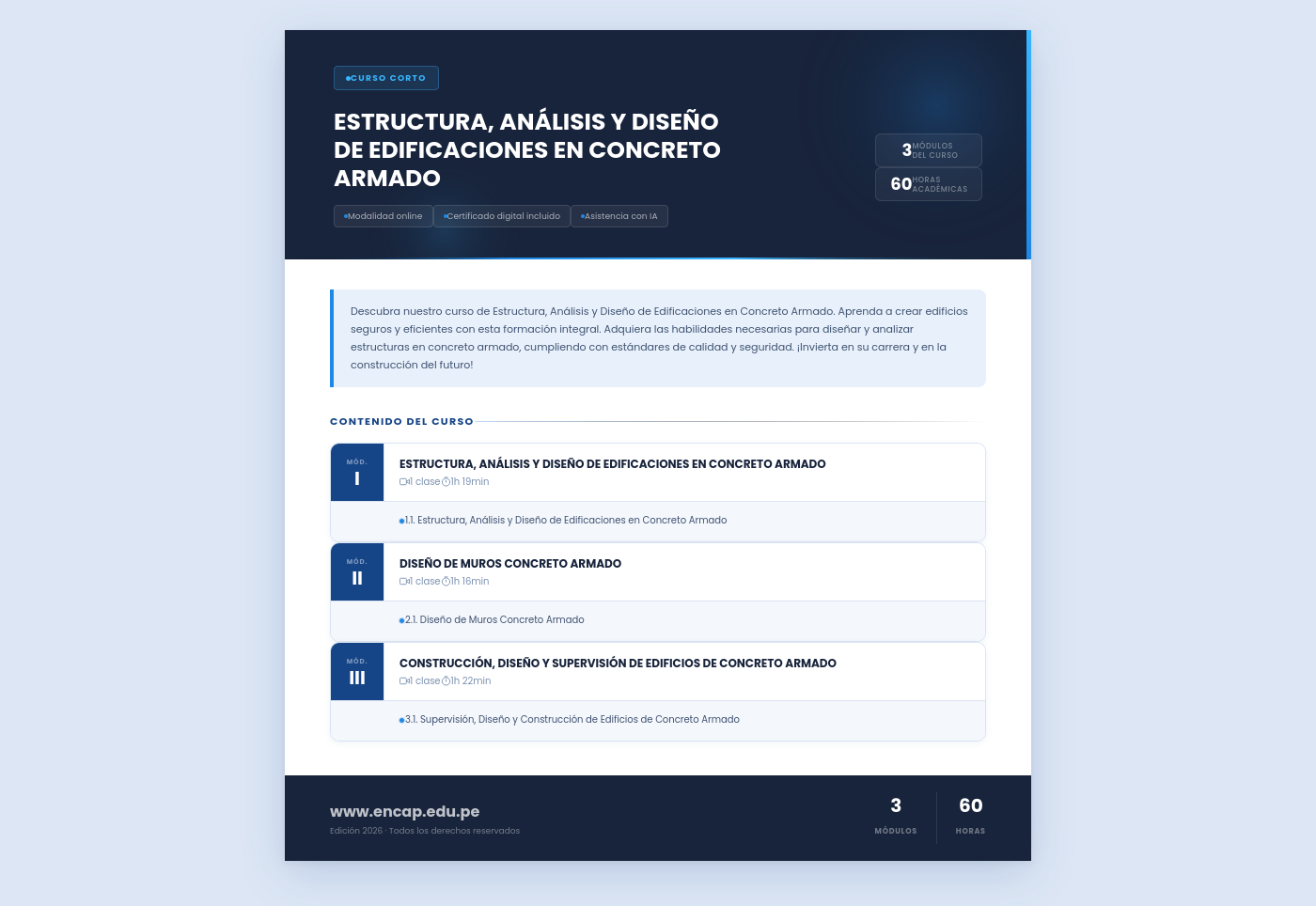 Descubra nuestro curso de Estructura, Análisis y Diseño de Edificaciones en Concreto Armado. Aprenda a crear edificios seguros y eficientes con esta formación integral. Adquiera las habilidades necesarias para diseñar y analizar estructuras en concreto armado, cumpliendo con estándares de calidad y seguridad. ¡Invierta en su carrera y en la construcción del futuro!