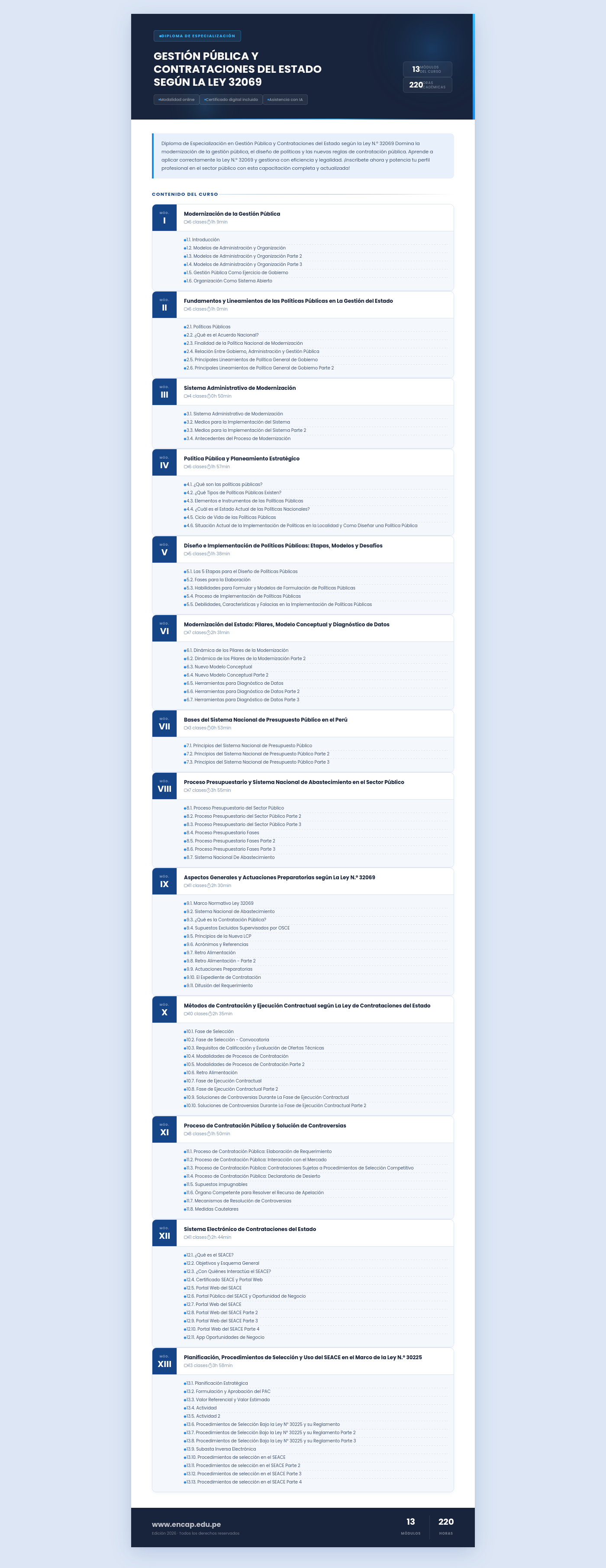 Domina la modernización de la gestión pública, el diseño de políticas y las nuevas reglas de contratación pública. Aprende a aplicar correctamente la Ley N.º 32069 y gestiona con eficiencia y legalidad.