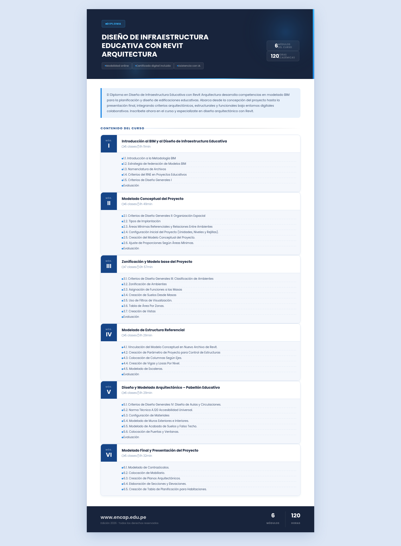 El Diploma en Diseño de Infraestructura Educativa con Revit Arquitectura desarrolla competencias en modelado BIM para la planificación y diseño de edificaciones educativas. Abarca desde la concepción del proyecto hasta la presentación final, integrando criterios arquitectónicos, estructurales y funcionales bajo entornos digitales colaborativos. Inscríbete ahora en el curso y especialízate en diseño arquitectónico con Revit.