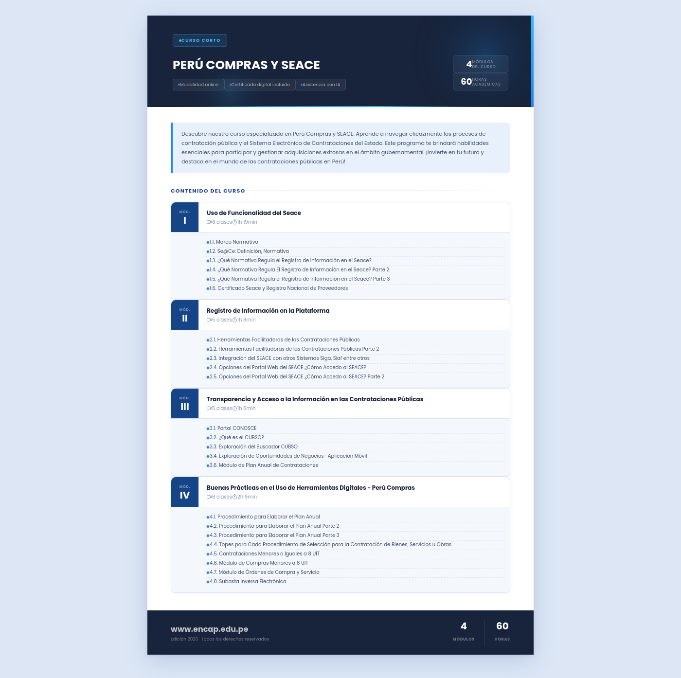 Descubre nuestro curso especializado en Perú Compras y SEACE. Aprende a navegar eficazmente los procesos de contratación pública y el Sistema Electrónico de Contrataciones del Estado. Este programa te brindará habilidades esenciales para participar y gestionar adquisiciones exitosas en el ámbito gubernamental. ¡Invierte en tu futuro y destaca en el mundo de las contrataciones públicas en Perú!