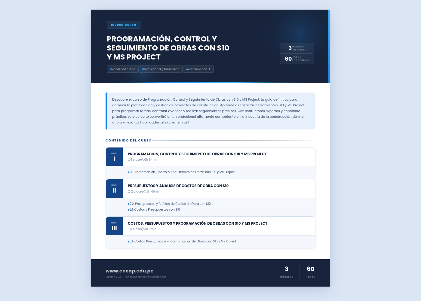 Descubre el curso de Programación, Control y Seguimiento de Obras con S10 y MS Project, tu guía definitiva para dominar la planificación y gestión de proyectos de construcción. Aprende a utilizar las herramientas S10 y MS Project para programar tareas, controlar avances y realizar seguimientos precisos. Con instructores expertos y contenido práctico, este curso te convertirá en un profesional altamente competente en la industria de la construcción. ¡Únete ahora y lleva tus habilidades al siguiente nivel!