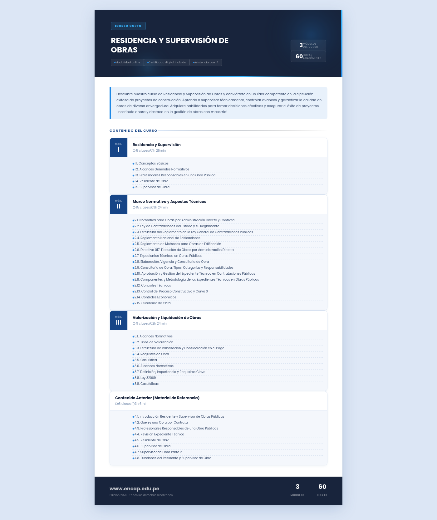 Descubre nuestro curso de Residencia y Supervisión de Obras y conviértete en un líder competente en la ejecución exitosa de proyectos de construcción. Aprende a supervisar técnicamente, controlar avances y garantizar la calidad en obras de diversa envergadura. Adquiere habilidades para tomar decisiones efectivas y asegurar el éxito de proyectos. ¡Inscríbete ahora y destaca en la gestión de obras con maestría!