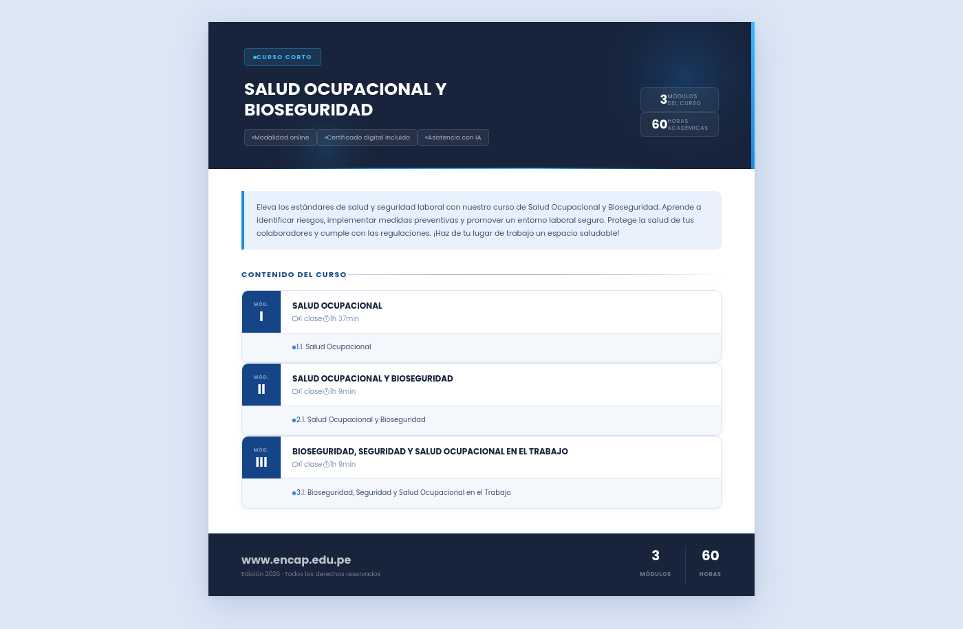 Eleva los estándares de salud y seguridad laboral con nuestro curso de Salud Ocupacional y Bioseguridad. Aprende a identificar riesgos, implementar medidas preventivas y promover un entorno laboral seguro. Protege la salud de tus colaboradores y cumple con las regulaciones. ¡Haz de tu lugar de trabajo un espacio saludable!