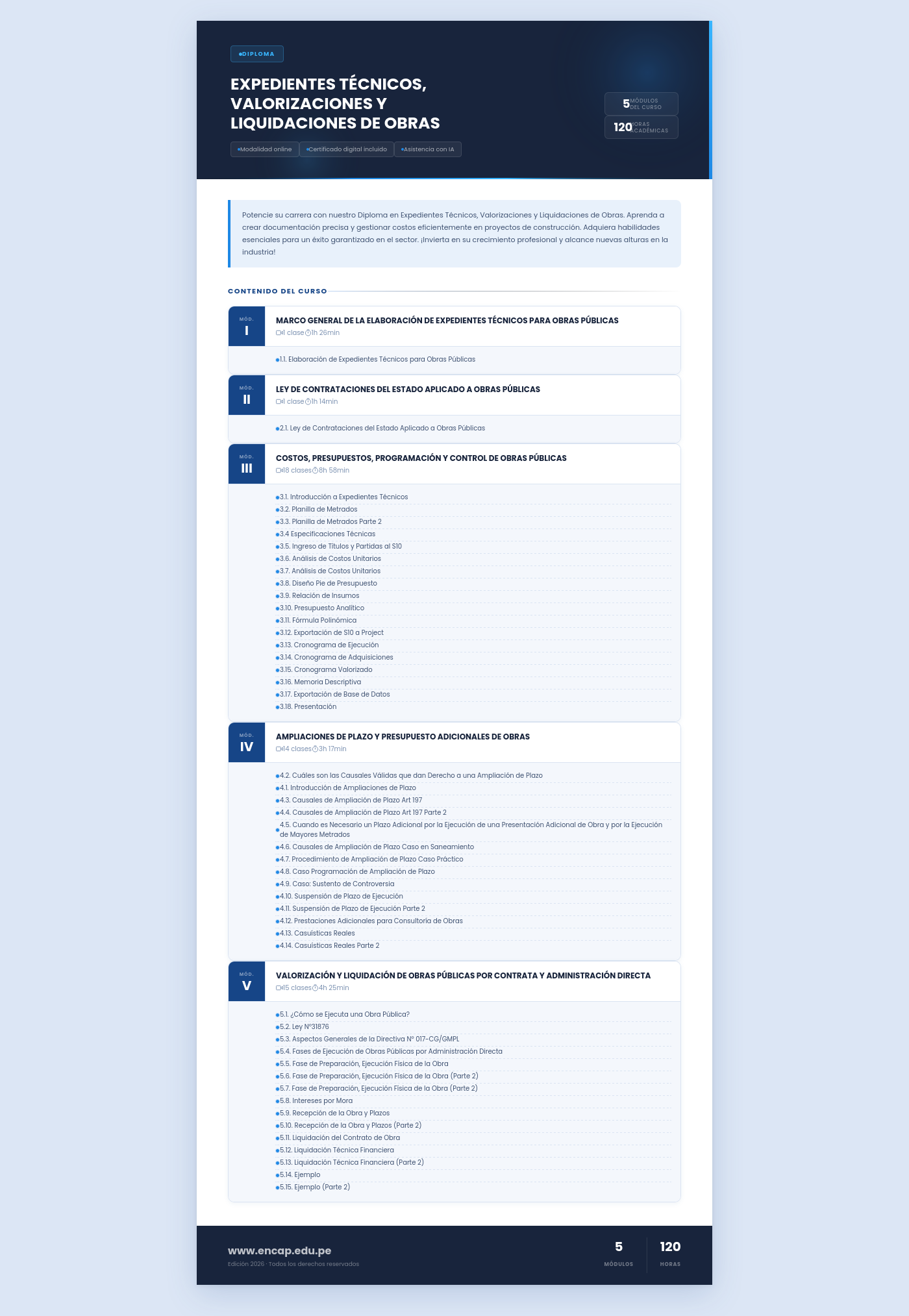 Potencie su carrera con nuestro Diploma en Expedientes Técnicos, Valorizaciones y Liquidaciones de Obras. Aprenda a crear documentación precisa y gestionar costos eficientemente en proyectos de construcción. Adquiera habilidades esenciales para un éxito garantizado en el sector. ¡Invierta en su crecimiento profesional y alcance nuevas alturas en la industria!