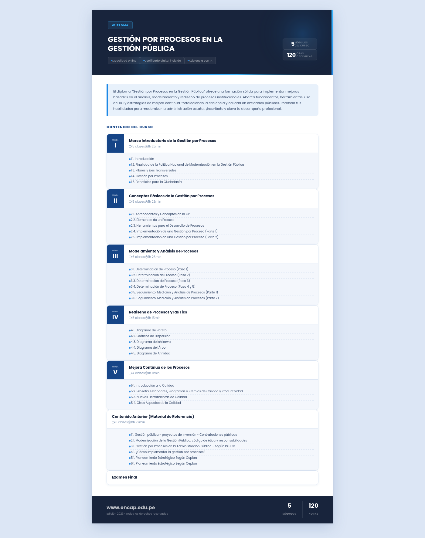 El diploma “Gestión por Procesos en la Gestión Pública” ofrece una formación sólida para implementar mejoras basadas en el análisis, modelamiento y rediseño de procesos institucionales. Abarca fundamentos, herramientas, uso de TIC y estrategias de mejora continua, fortaleciendo la eficiencia y calidad en entidades públicas. Potencia tus habilidades para modernizar la administración estatal. ¡Inscríbete y eleva tu desempeño profesional.