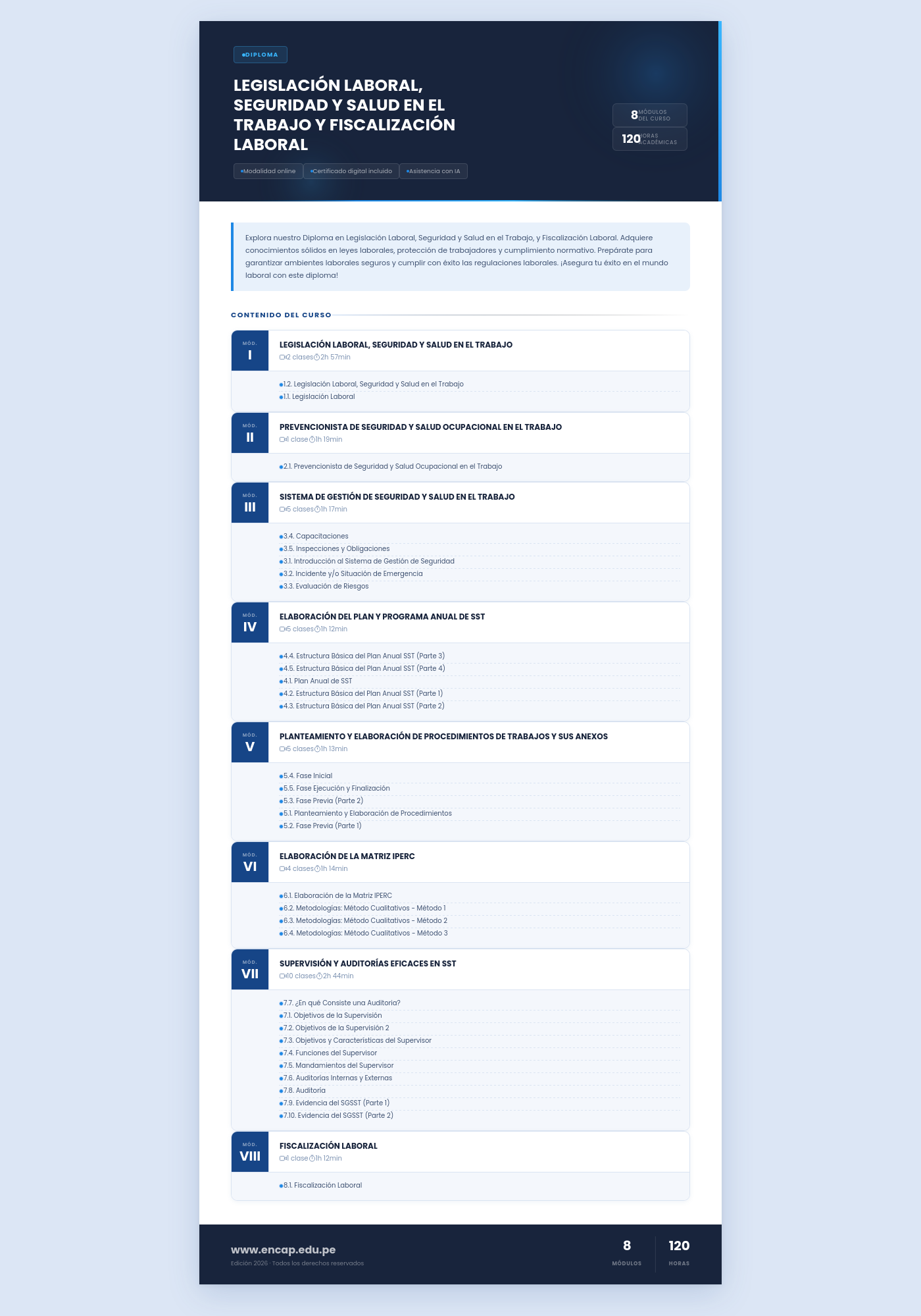 Explora nuestro Diploma en Legislación Laboral, Seguridad y Salud en el Trabajo, y Fiscalización Laboral. Adquiere conocimientos sólidos en leyes laborales, protección de trabajadores y cumplimiento normativo. Prepárate para garantizar ambientes laborales seguros y cumplir con éxito las regulaciones laborales. ¡Asegura tu éxito en el mundo laboral con este diploma!