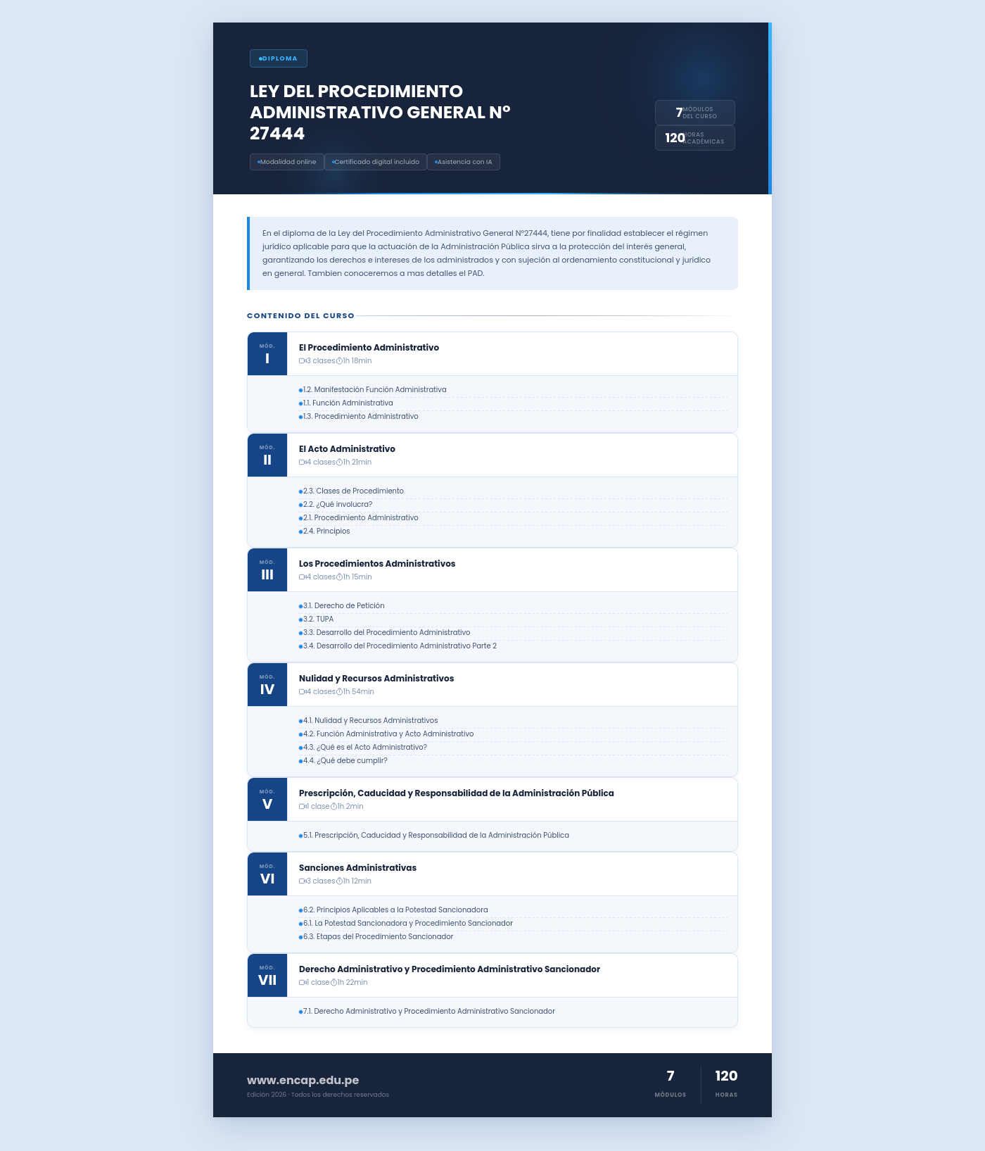 En el diploma de la Ley del Procedimiento Administrativo General N°27444, tiene por finalidad establecer el régimen jurídico aplicable para que la actuación de la Administración Pública sirva a la protección del interés general, garantizando los derechos e intereses de los administrados y con sujeción al ordenamiento constitucional y jurídico en general. Tambien conoceremos a mas detalles el PAD.