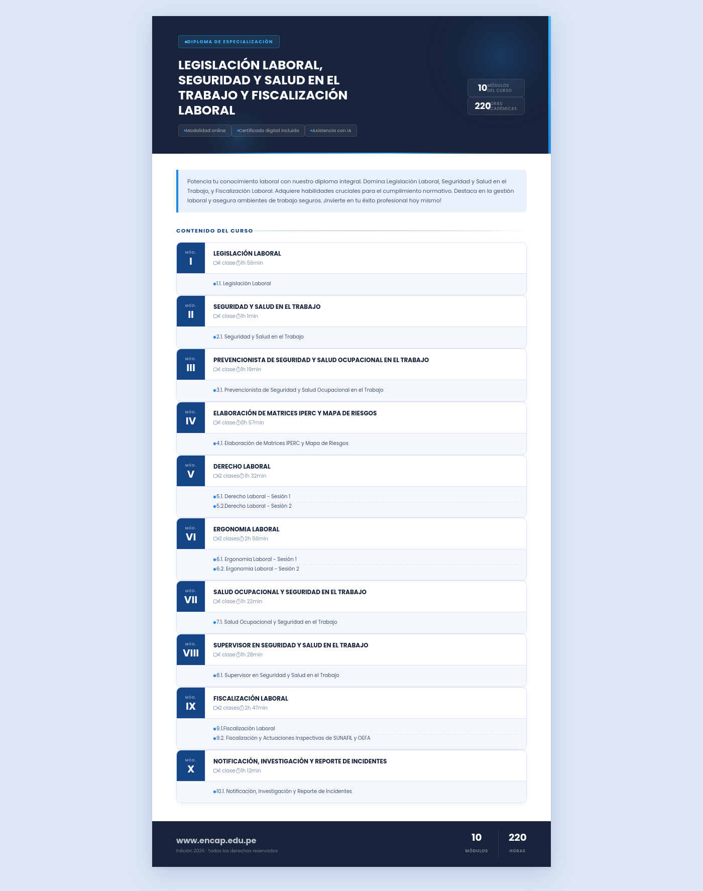 Potencia tu conocimiento laboral con nuestro diploma integral. Domina Legislación Laboral, Seguridad y Salud en el Trabajo, y Fiscalización Laboral. Adquiere habilidades cruciales para el cumplimiento normativo. Destaca en la gestión laboral y asegura ambientes de trabajo seguros. ¡Invierte en tu éxito profesional hoy mismo!