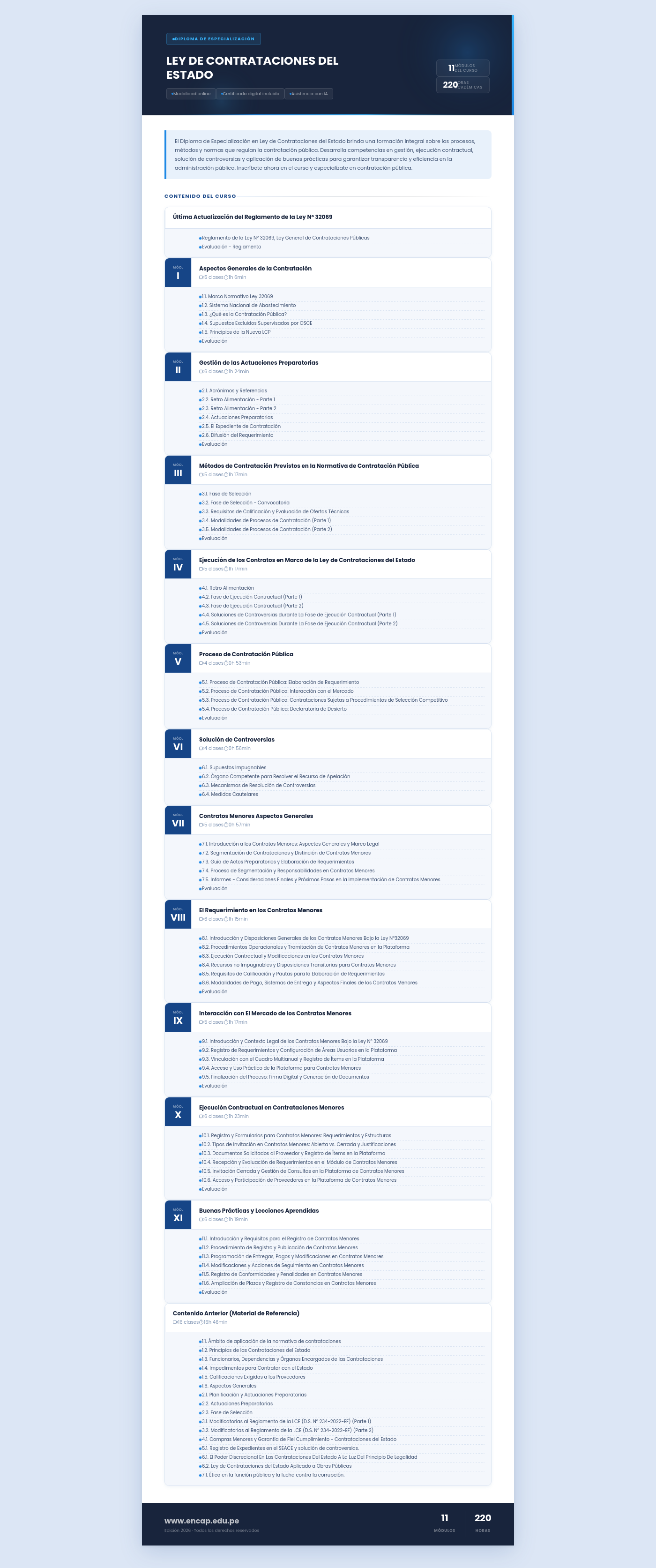 El Diploma de Especialización en Ley de Contrataciones del Estado brinda una formación integral sobre los procesos, métodos y normas que regulan la contratación pública. Desarrolla competencias en gestión, ejecución contractual, solución de controversias y aplicación de buenas prácticas para garantizar transparencia y eficiencia en la administración pública. Inscríbete ahora en el curso y especialízate en contratación pública.