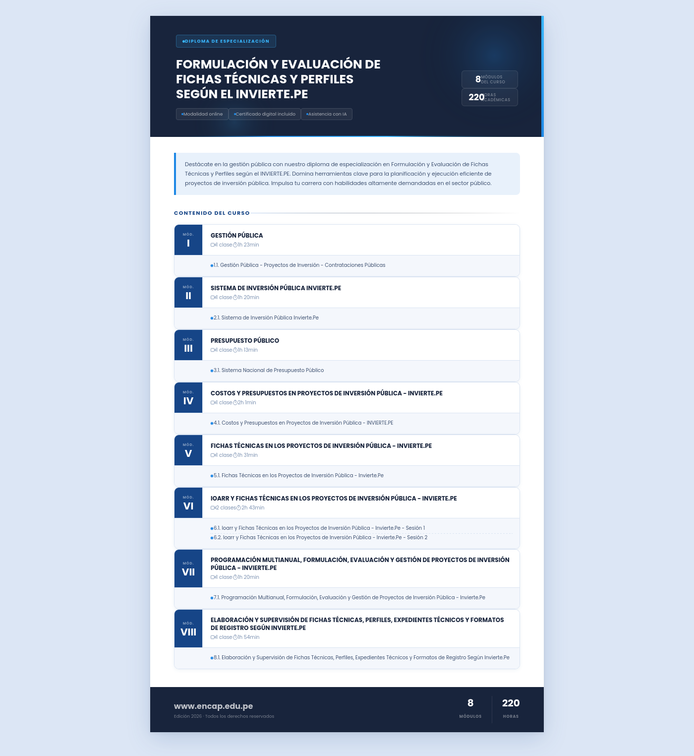 Destácate en la gestión pública con nuestro diploma de especialización en Formulación y Evaluación de Fichas Técnicas y Perfiles según el INVIERTE.PE. Domina herramientas clave para la planificación y ejecución eficiente de proyectos de inversión pública. Impulsa tu carrera con habilidades altamente demandadas en el sector público.