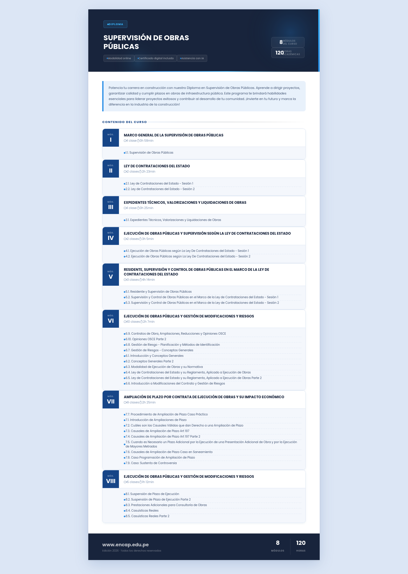 Potencia tu carrera en construcción con nuestro Diploma en Supervisión de Obras Públicas. Aprende a dirigir proyectos, garantizar calidad y cumplir plazos en obras de infraestructura pública. Este programa te brindará habilidades esenciales para liderar proyectos exitosos y contribuir al desarrollo de tu comunidad. ¡Invierte en tu futuro y marca la diferencia en la industria de la construcción!