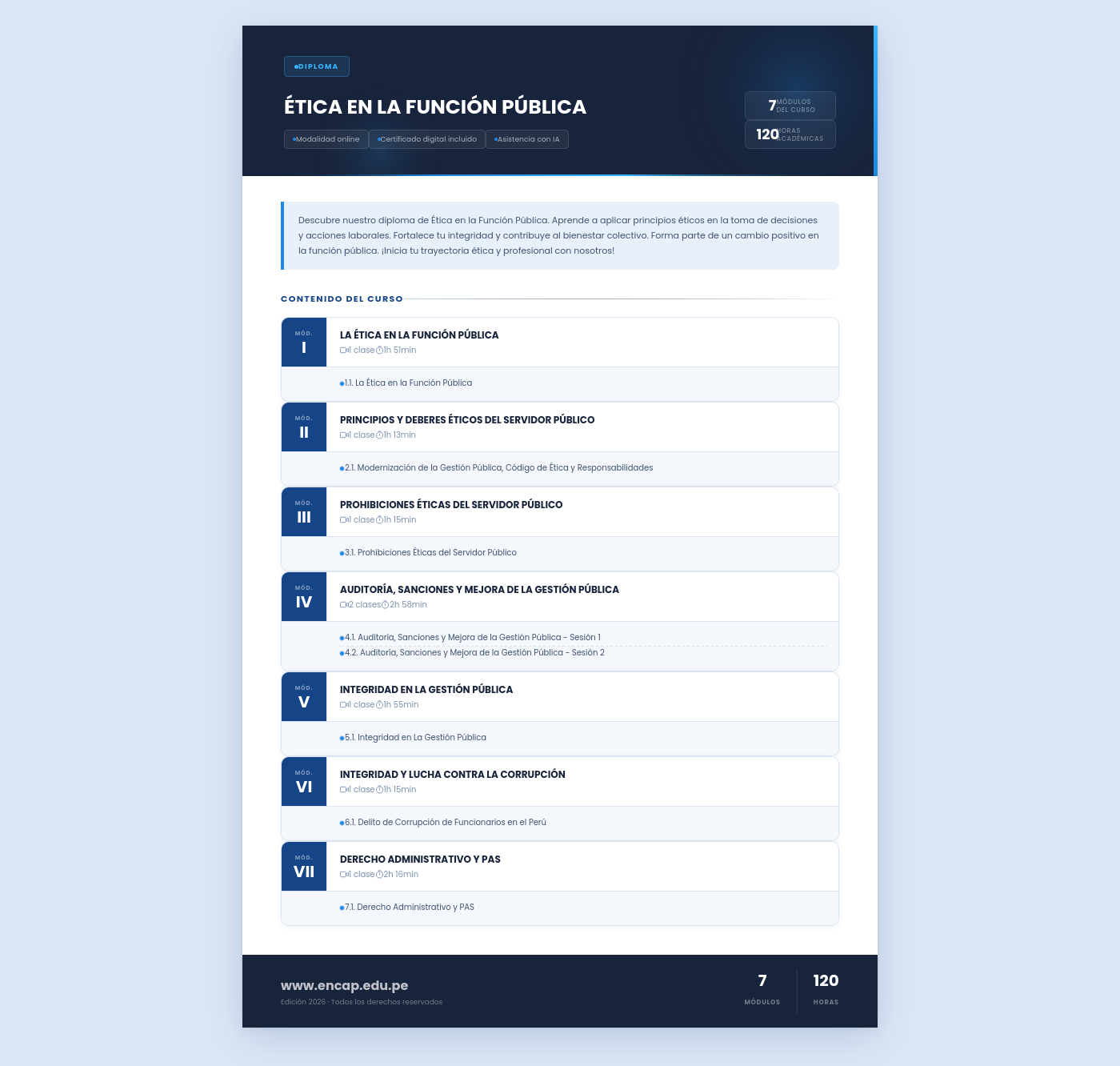 Descubre nuestro diploma de Ética en la Función Pública. Aprende a aplicar principios éticos en la toma de decisiones y acciones laborales. Fortalece tu integridad y contribuye al bienestar colectivo. Forma parte de un cambio positivo en la función pública. ¡Inicia tu trayectoria ética y profesional con nosotros!