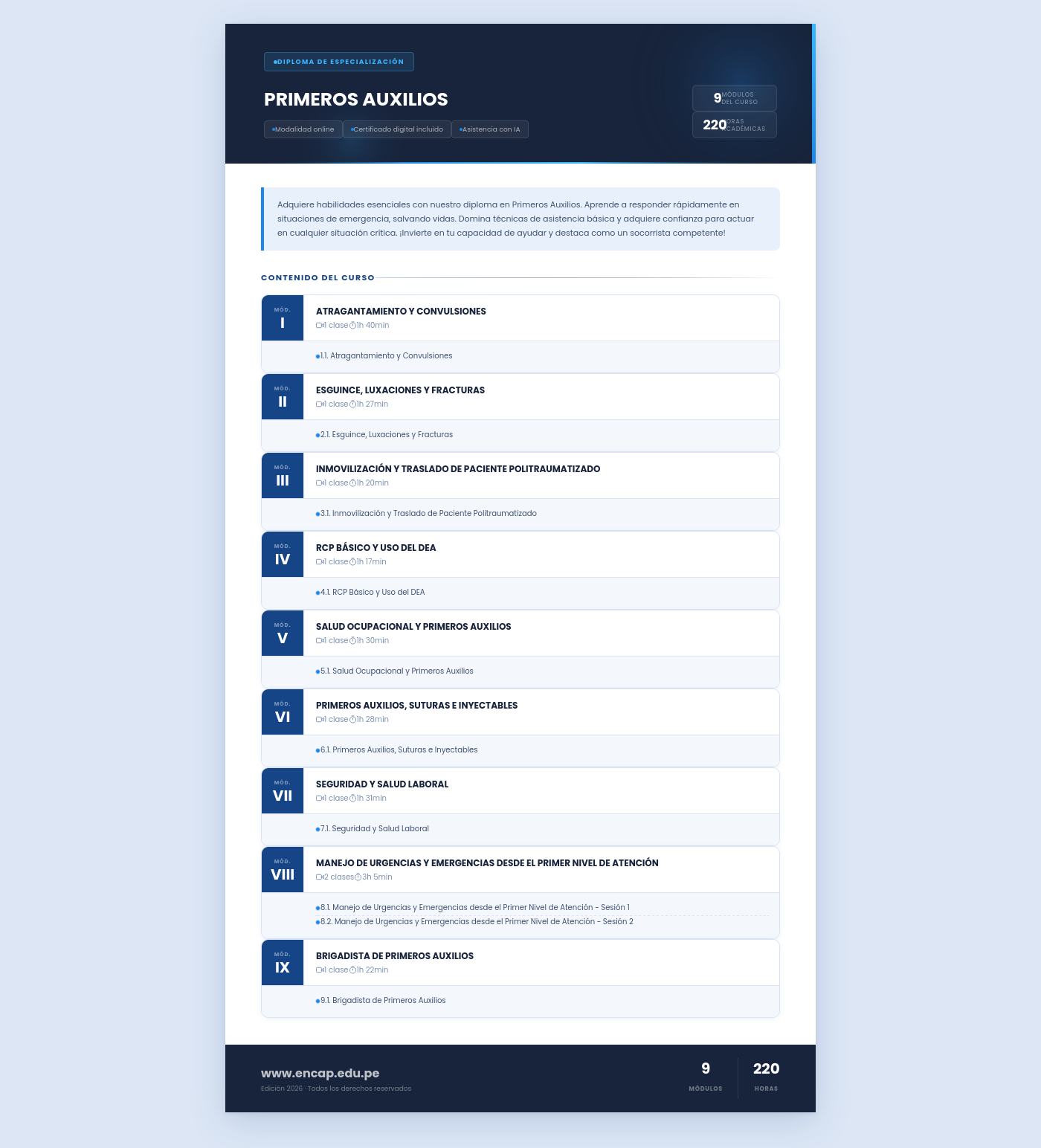 Adquiere habilidades esenciales con nuestro diploma en Primeros Auxilios. Aprende a responder rápidamente en situaciones de emergencia, salvando vidas. Domina técnicas de asistencia básica y adquiere confianza para actuar en cualquier situación crítica. ¡Invierte en tu capacidad de ayudar y destaca como un socorrista competente!