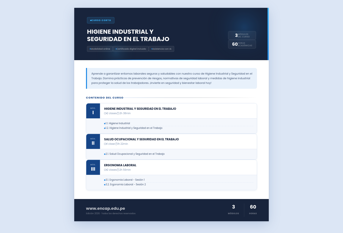 Aprende a garantizar entornos laborales seguros y saludables con nuestro curso de Higiene Industrial y Seguridad en el Trabajo. Domina prácticas de prevención de riesgos, normativas de seguridad laboral y medidas de higiene industrial para proteger la salud de los trabajadores. ¡Invierte en seguridad y bienestar laboral hoy!