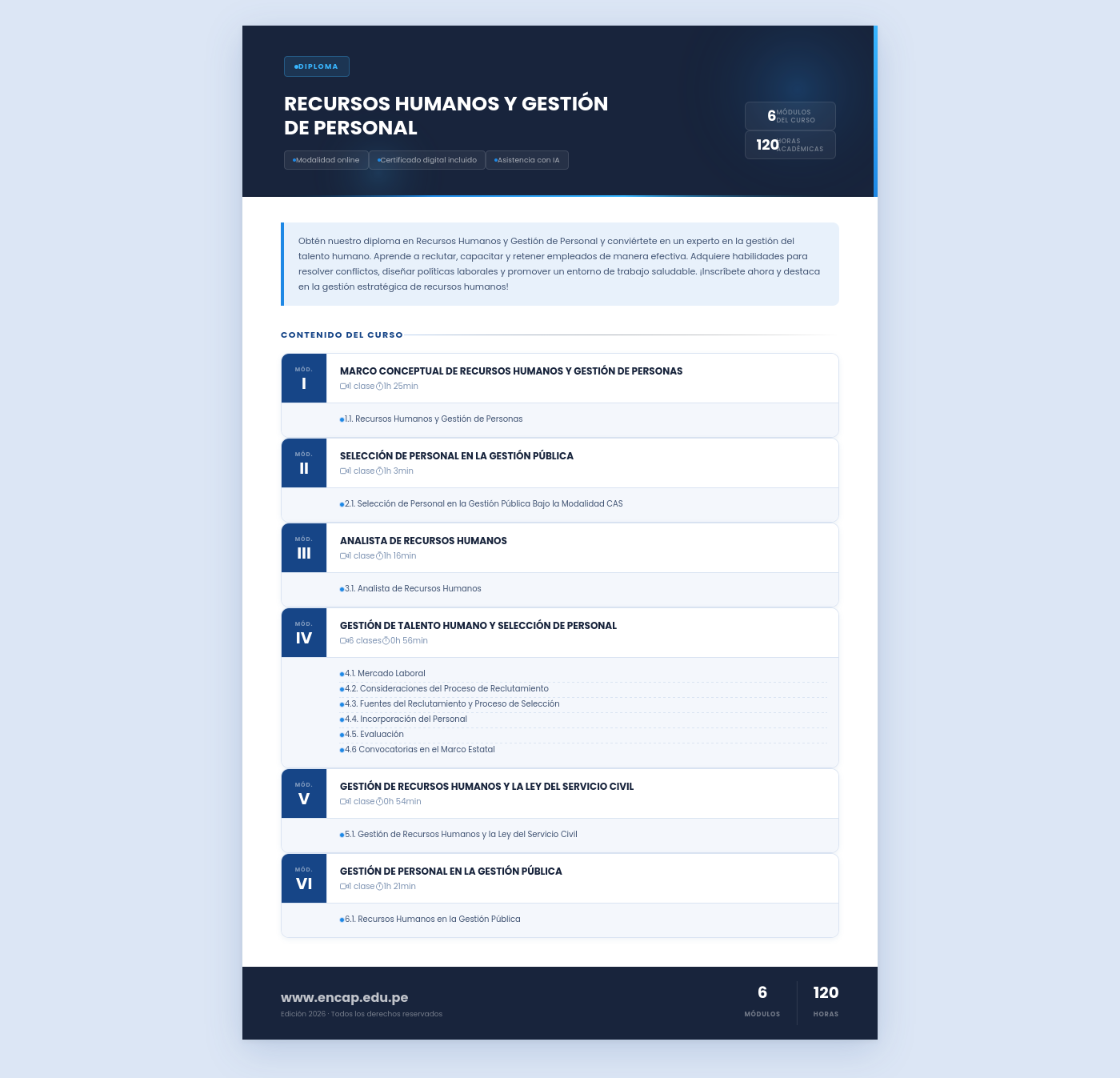 Obtén nuestro diploma en Recursos Humanos y Gestión de Personal y conviértete en un experto en la gestión del talento humano. Aprende a reclutar, capacitar y retener empleados de manera efectiva. Adquiere habilidades para resolver conflictos, diseñar políticas laborales y promover un entorno de trabajo saludable. ¡Inscríbete ahora y destaca en la gestión estratégica de recursos humanos!