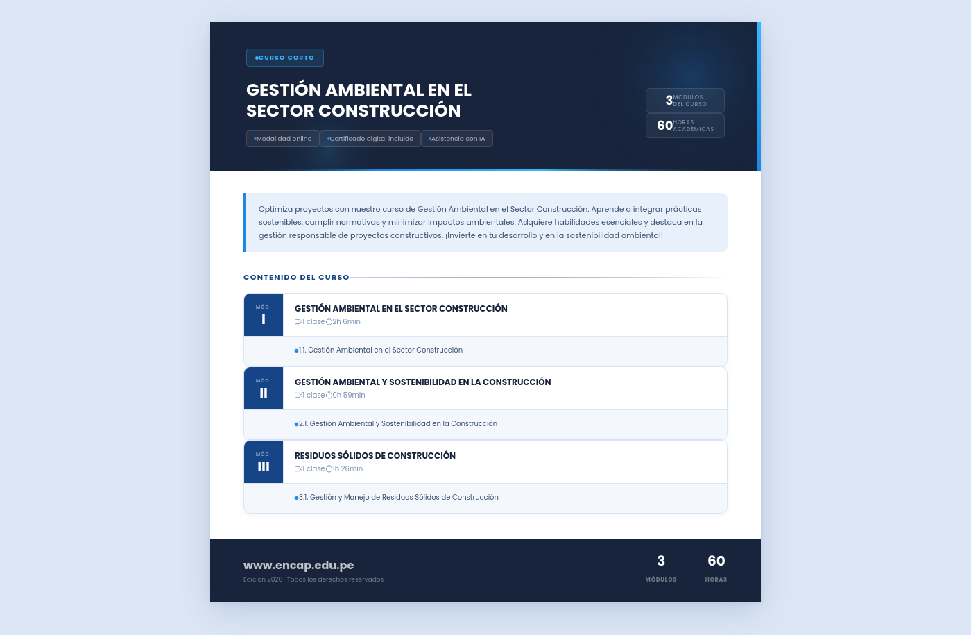 Optimiza proyectos con nuestro curso de Gestión Ambiental en el Sector Construcción. Aprende a integrar prácticas sostenibles, cumplir normativas y minimizar impactos ambientales. Adquiere habilidades esenciales y destaca en la gestión responsable de proyectos constructivos. ¡Invierte en tu desarrollo y en la sostenibilidad ambiental!