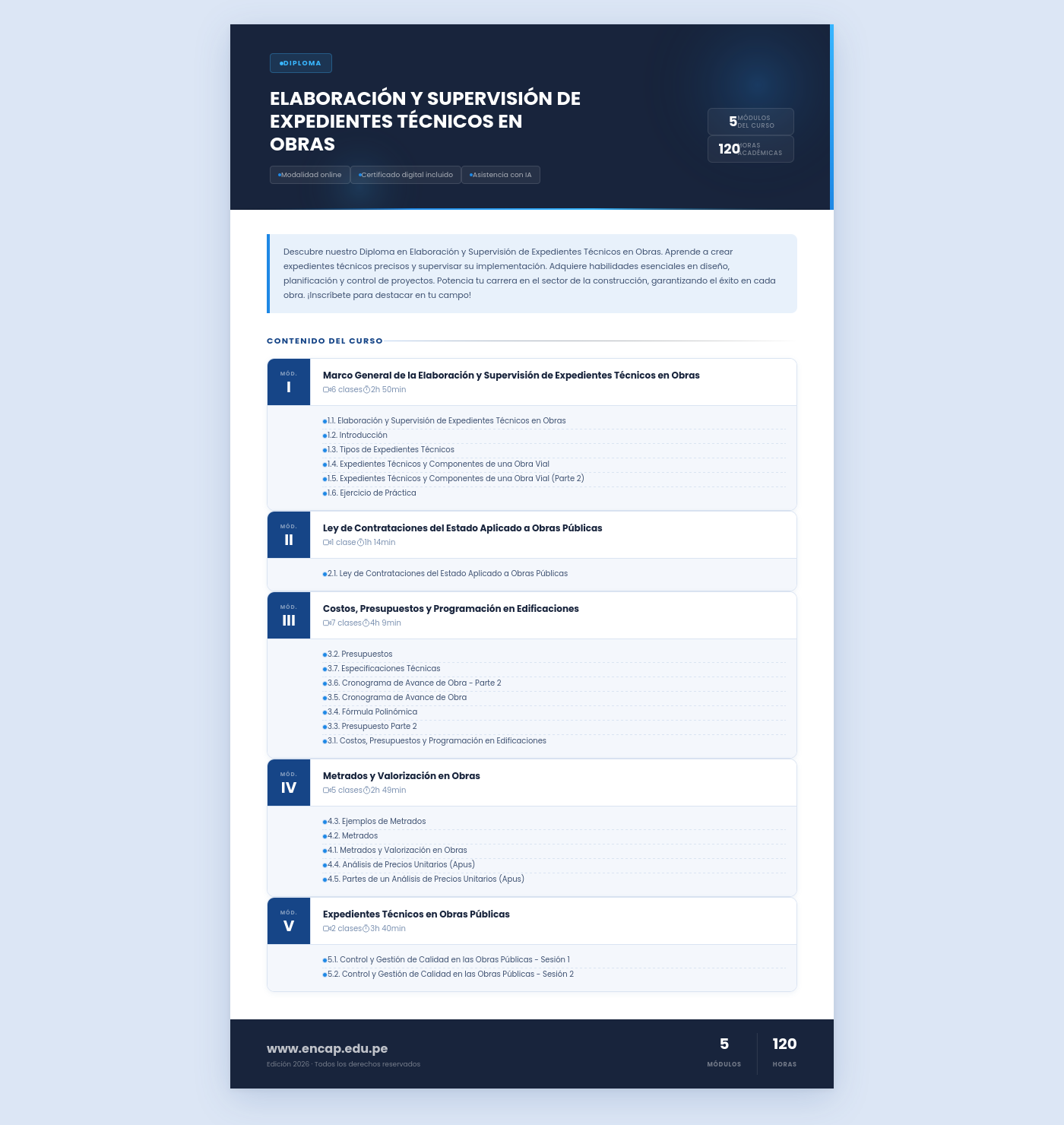 Descubre nuestro Diploma en Elaboración y Supervisión de Expedientes Técnicos en Obras. Aprende a crear expedientes técnicos precisos y supervisar su implementación. Adquiere habilidades esenciales en diseño, planificación y control de proyectos. Potencia tu carrera en el sector de la construcción, garantizando el éxito en cada obra. ¡Inscríbete para destacar en tu campo!